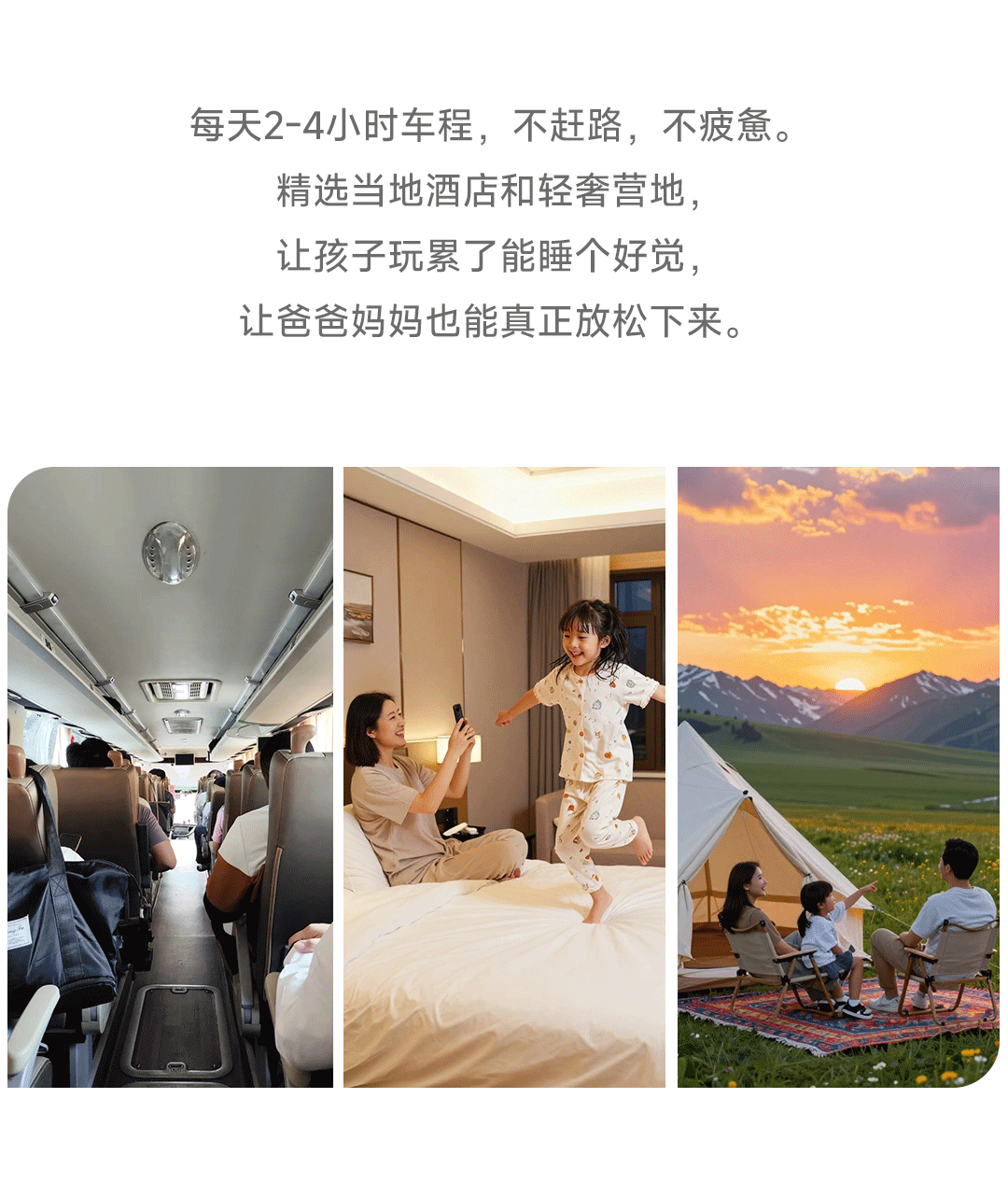 5.携带小孩应注意健康防护:备齐儿童常用药(退烧药、晕车贴等),高原行程需咨询医生;避免长时间暴晒或剧烈活动,定时补充水分。注意防走失,可以佩戴写有联系方式的腕带,教导孩子识别工作人员标识;景区人流密集处建议使用防走失绳。