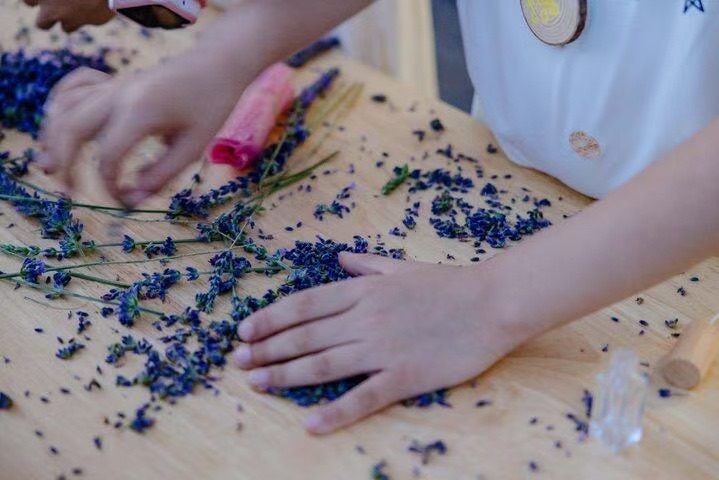 随后进入手作坊,进行干花书签制作,香薰蜡烛制作。最后进行香草西点的制作,一起烘焙幸福。完成后一起打卡拍照,甜蜜的下午茶体验。