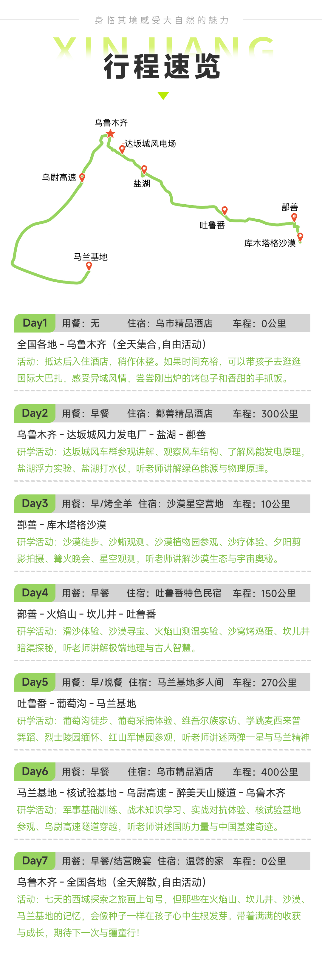 5.全程研学项目(风车发电基地/盐场参观,盐湖浮力实验,火焰山测温,葡萄晾晒,马兰基地项目)