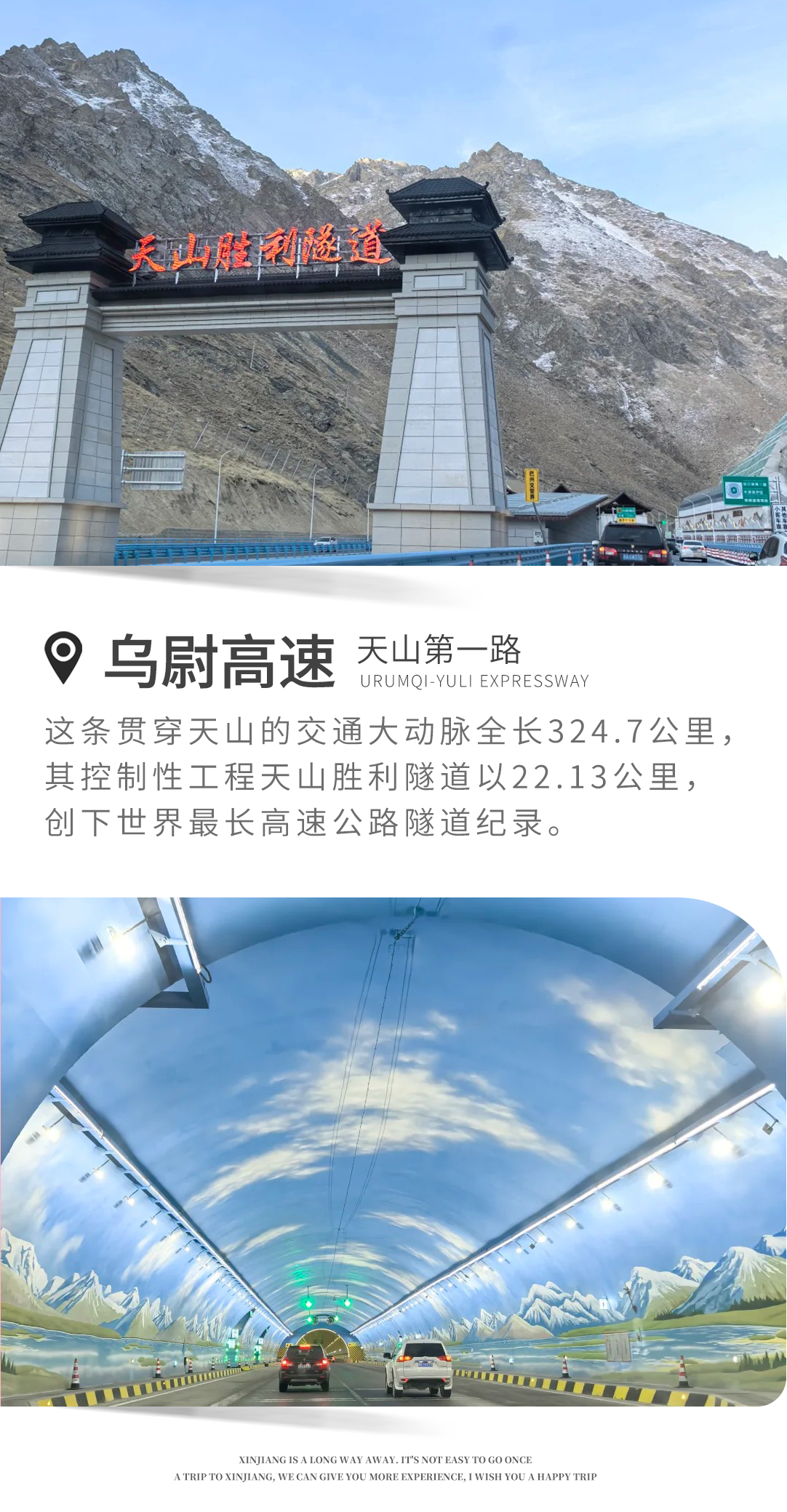 中午县城用餐,驶入世界最长高速公路隧道,一路翻越天山,感受科技与美景的结合,体验中国基建的魅力。