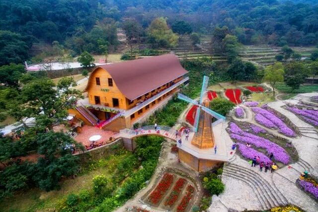 增城二龙山:万亩森林梯田花园旅游区位于北回归线最美丽的热带雨林,旅游区面积7000多亩,是一个以百年古树、千亩古梯田、十里古水蓊树、十里兰溪、200米落差瀑布、十里栈道、山涧瀑布水上乐园胜景,具有优美自然景色和二龙山神话传说,中国美景与欧美小镇风情相结合的现代健康休闲度假胜地。包括古梯田花海、珍稀桫椤园(国家一级保护的濒危植物)、花海餐厅、山顶爱情花园、婚纱摄影基地、特色城堡、风情休闲吧、古蓊树溪流、瀑布、森林等等。