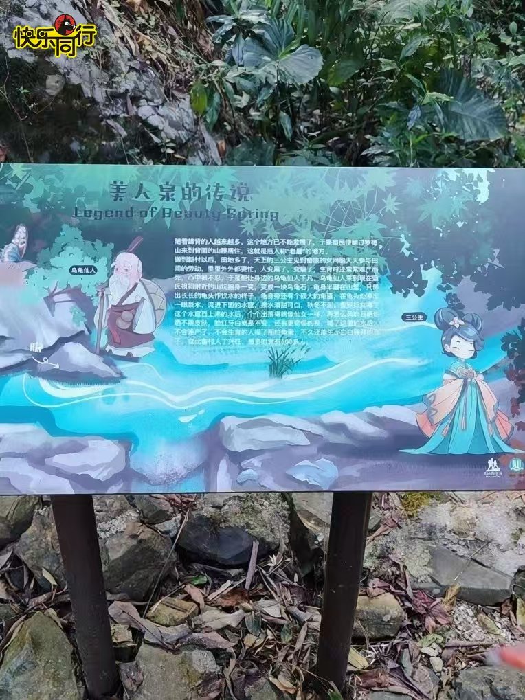 沿路还能看到畲族人的祖祠,有垒砌的石头,是先民生活过的痕迹。经过祖祠,可以看到一块像龟壳的石头,有泉水从下面流出。这个景点叫“美人泉”,它的名字背后有一个美好的传说。