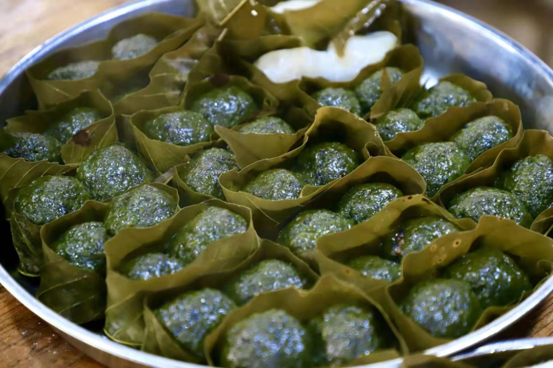 软糯糯米粉,搭配清甜内馅,亲手包制青团