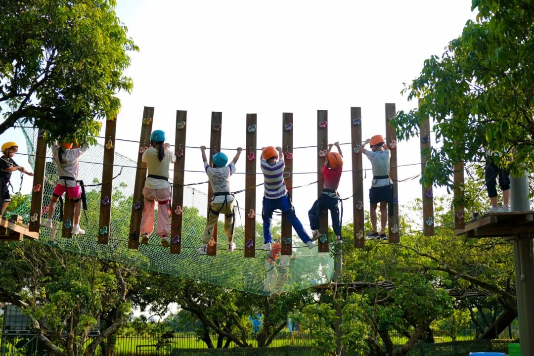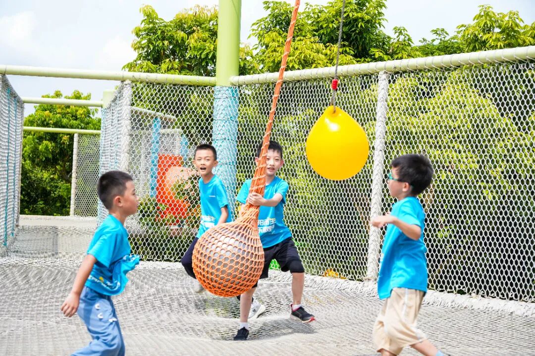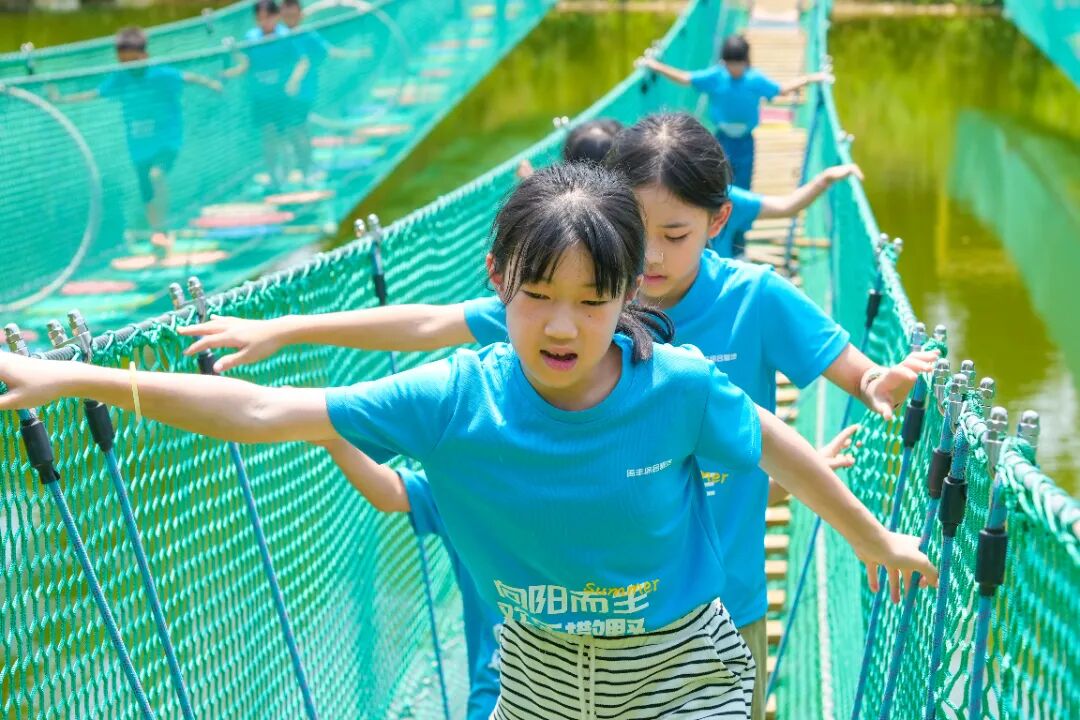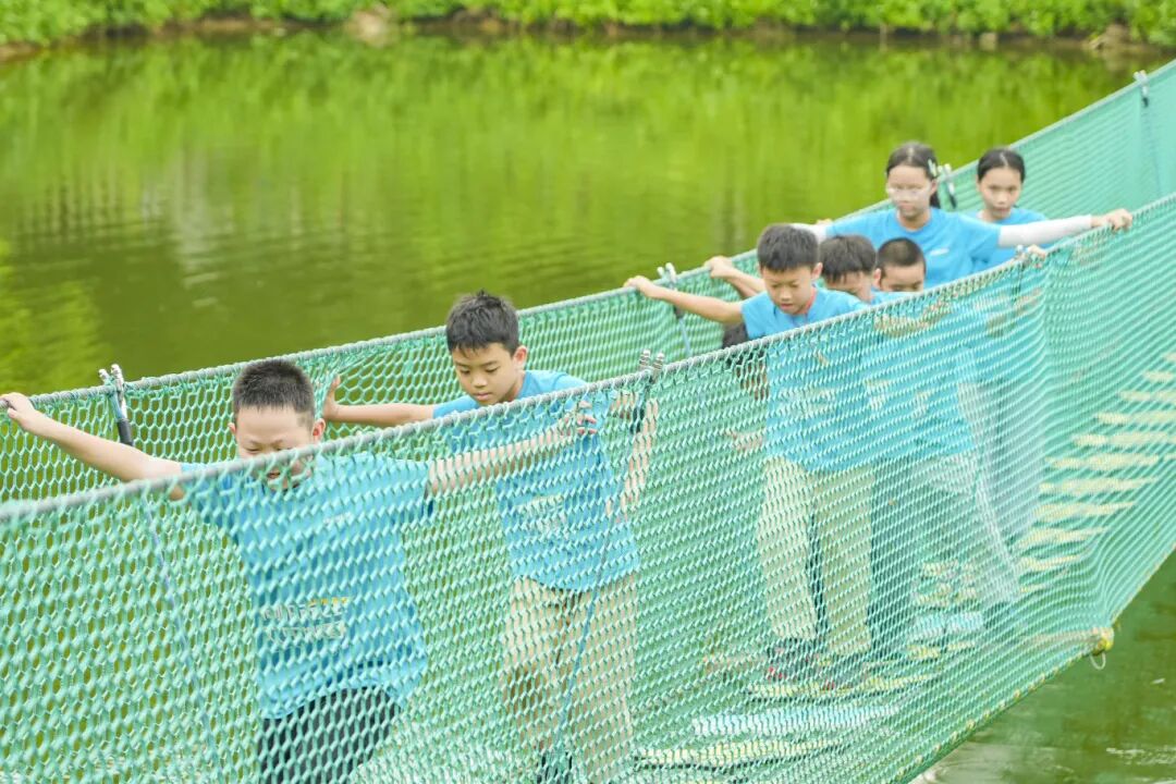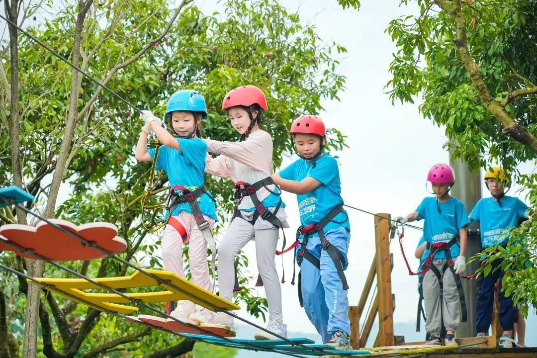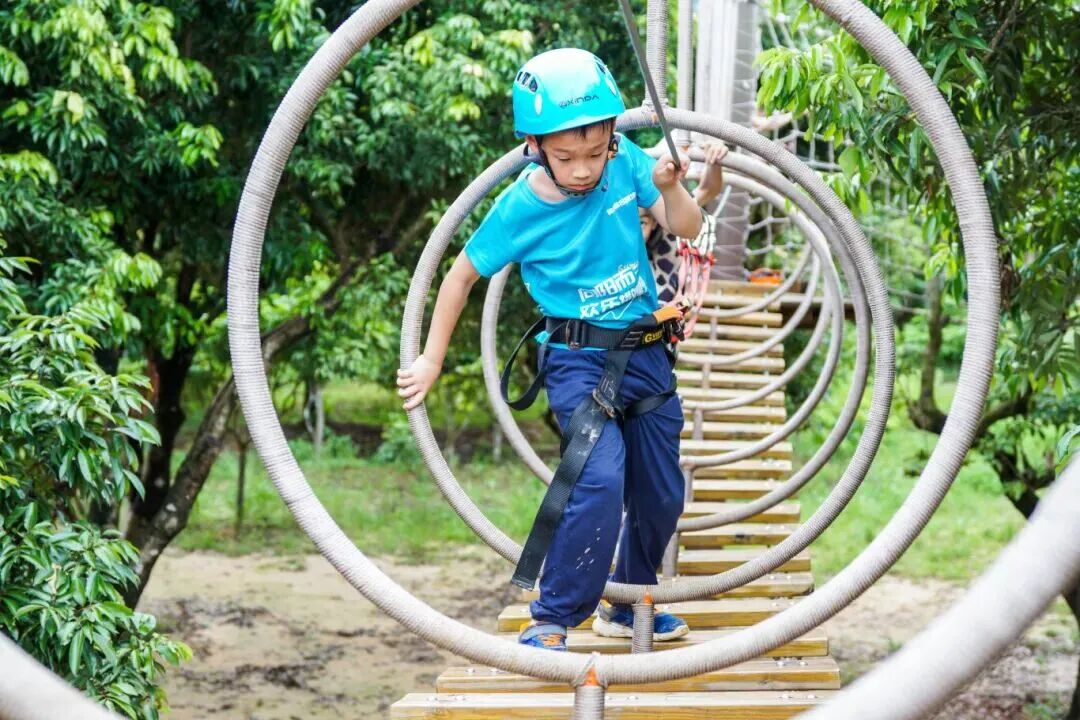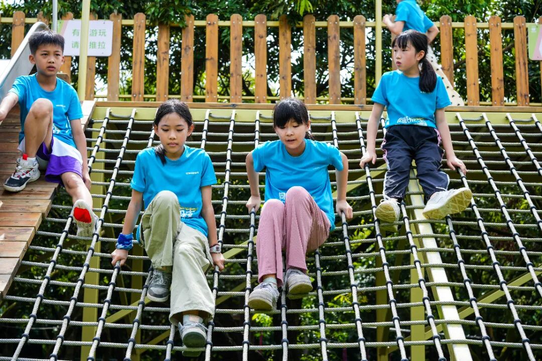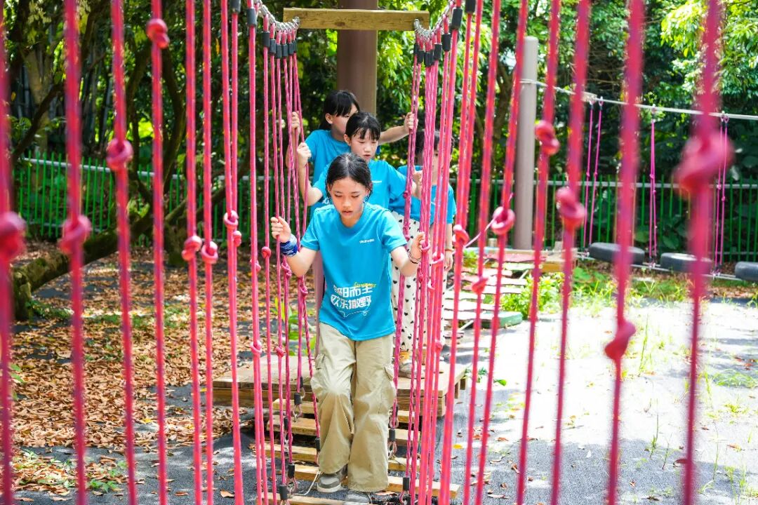 孩子们在环形吊桥、绳网攀爬里勇敢穿梭