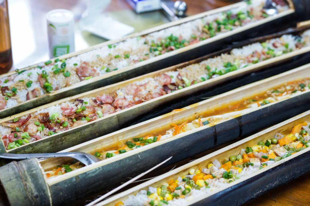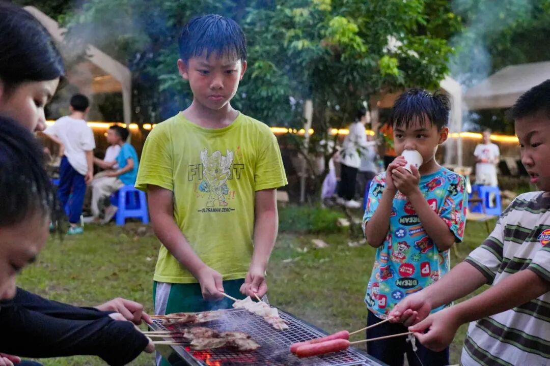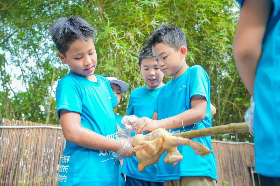 统一营地用餐,均由专业餐饮团队打造营养餐品,注重用餐方式多元化,包含围餐、竹筒饭等,新鲜蔬菜、肉类每日直供,保证孩子们的营养摄入均衡。