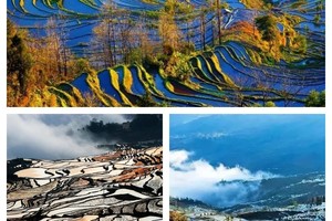 2.红河哈尼梯田--元阳梯田:联合国教科文组织世界遗产名录,几万亩的梯田,在茫茫森林的掩映中,在漫漫云海的覆盖下,构成了神奇壮丽的景观。