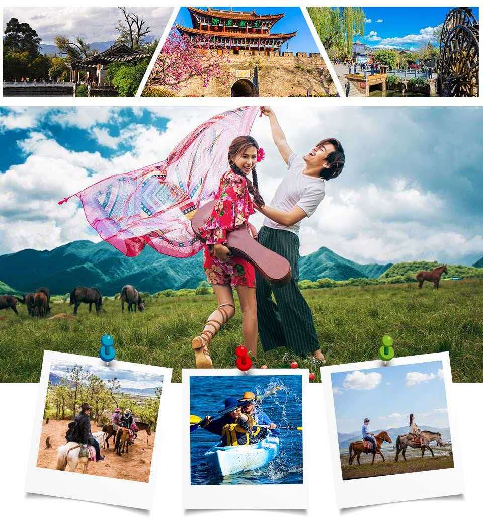 6、 景点(南诏风情岛、虎跳峡、大理花海,洱海骑行),大理古城及丽江古城不用门票
