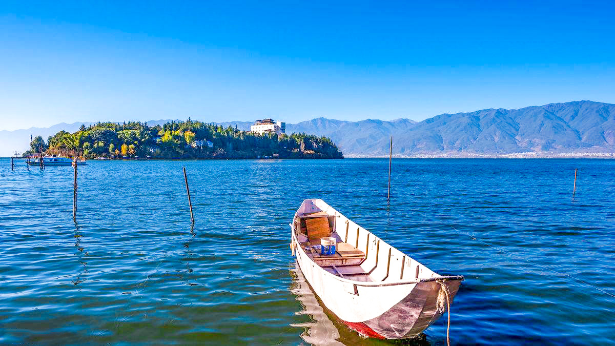 洱海位于大理古城东侧,青葱的苍山脚下,湖泊蔚蓝,以山水美景和独具风情的各个村镇而闻名于世,是大理四大名景之一。洱海有名的景色是东岸的双廊,这里可以欣赏到优美的湖景,阳光透过云层,折射在湖水上,形成了“洱海神光”,以连绵的青山为背景,是摄影爱好者捕抓的风景大片。
